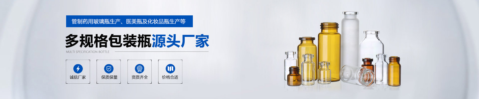 專注各種規(guī)格的西林瓶(模制,管制),輸液瓶,廣口瓶,實驗室玻璃儀器,口服液瓶,蜂蜜瓶,螺旋口瓶,藥用玻璃瓶等.